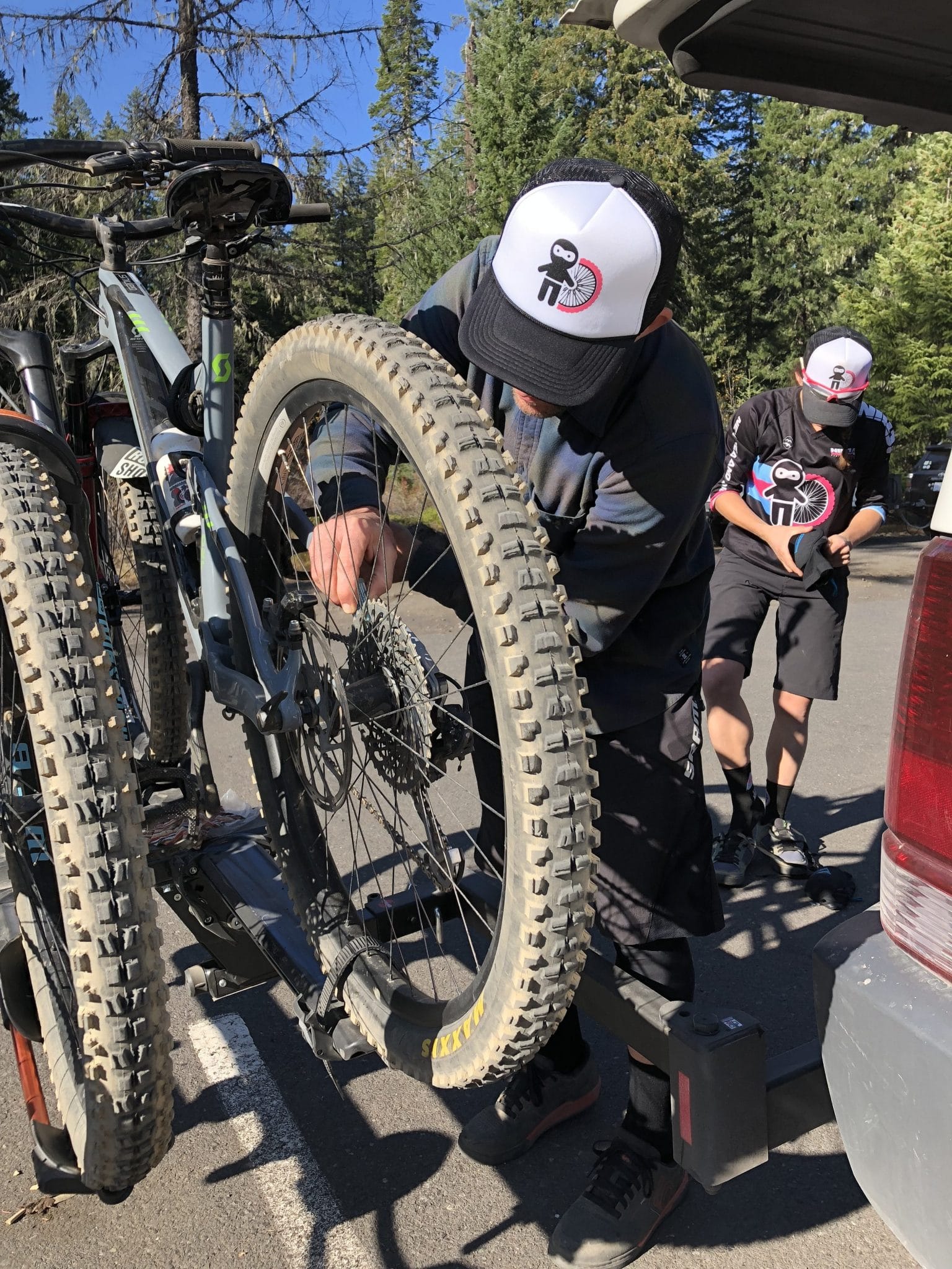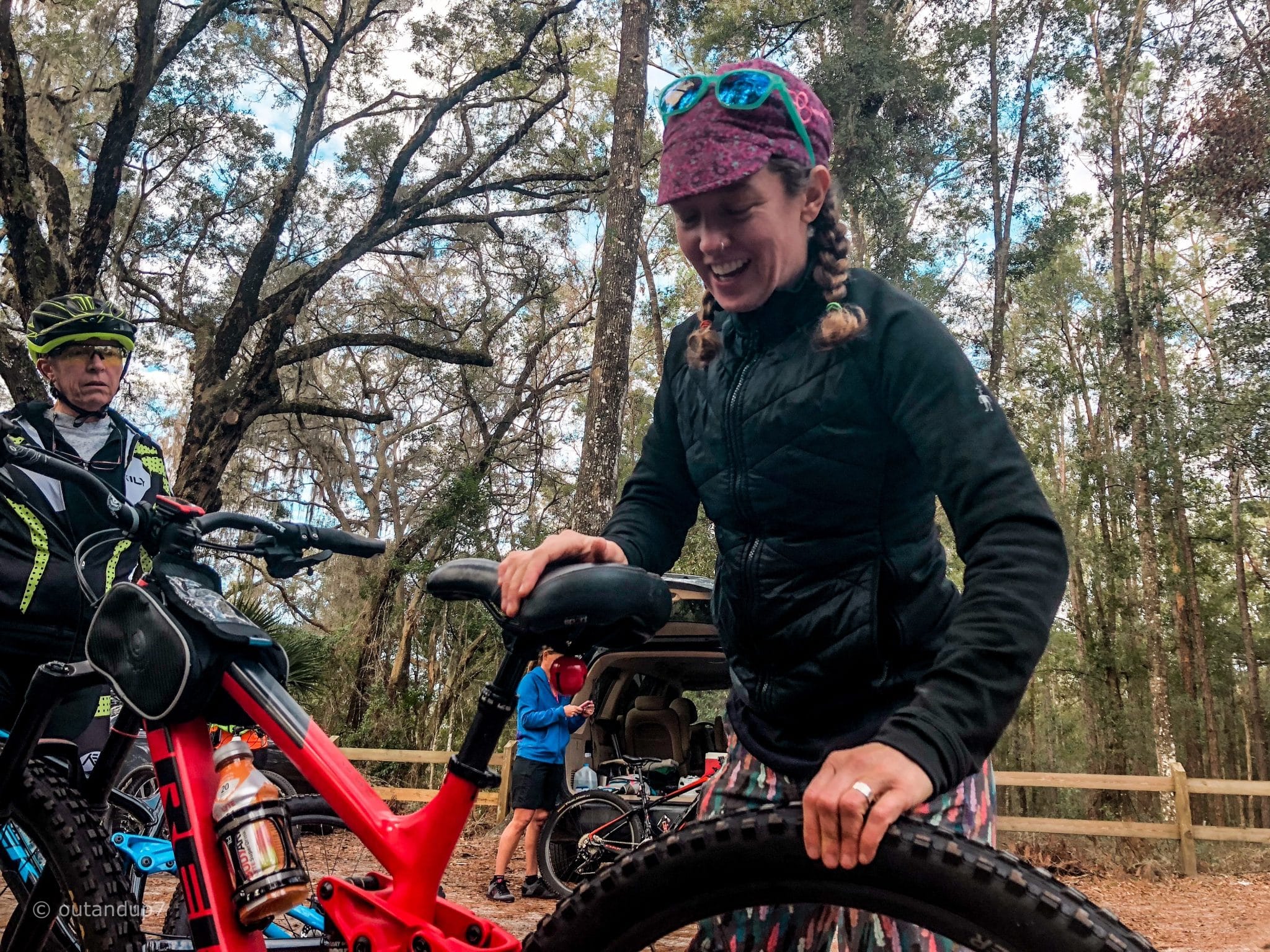 To get the most accurate tire pressure, use a floor pump with a gauge. As you learn what your preferred pressure feels like, you can test by hand (push on the tire with the palm of your hand to feel for squish or lack-thereof). Too much pressure? Let just a little air out at a time. Too low? Grab that hand pump from your pack and add a bit of pressure. The “right” tire pressure is different for every rider and ride; it depends on the bike and tire setup, the weight of the rider, trail conditions, personal preferences, etc. This check it intended to to make sure you’re in the ball-park of where you’d like the pressure to be.
