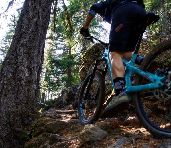 It is critically important to be aware of the path of both your front-wheel and rear-wheel on technical trail. Each wheel is likely following its own line, especially as you’re traversing through rocks or roots. Being aware of your wheel tracking takes time and practice. Practicing the rock dodge skill on a flat area will help you be more aware of this wheel tracking so you can better set up for a successful line choice when technical climbing.