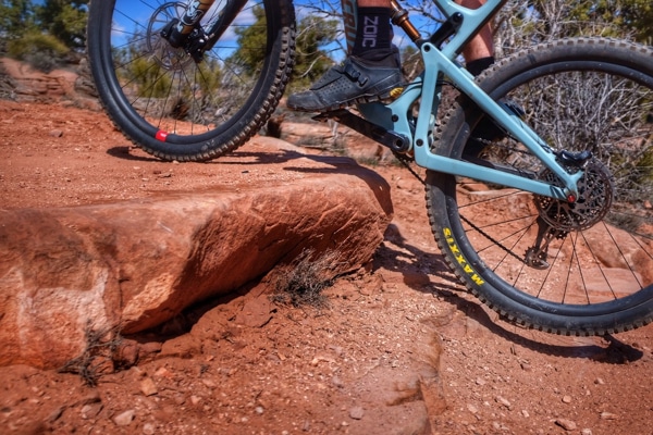 Set your speed prior to starting the climb. When you first start technical climbing you may come to the conclusion that momentum improves your odds of success. And to some degree, you’d be right. However, the “right” amount of momentum is going to be relative to the length, technical features and grade of the climb in front of you. If it’s a relatively short technical section, you may be able to use momentum to blast up and over any obstacles by relaxing and letting your suspension do the work. However, if it’s a long(er) technical climb where momentum will diminish before the top, you must have the skills to tackle the terrain at low(er) speeds.