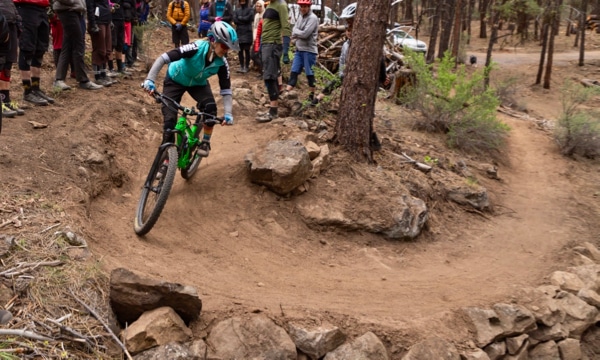 The apex of the switchback is often the roughest part so make your pre-turn early to bring your apex closer to the entrance of the switch-back. It’s best to get as much of your turn as possible done at the entrance (or the easier part of the switchback) allowing you to take a straighter line through the rough stuff.