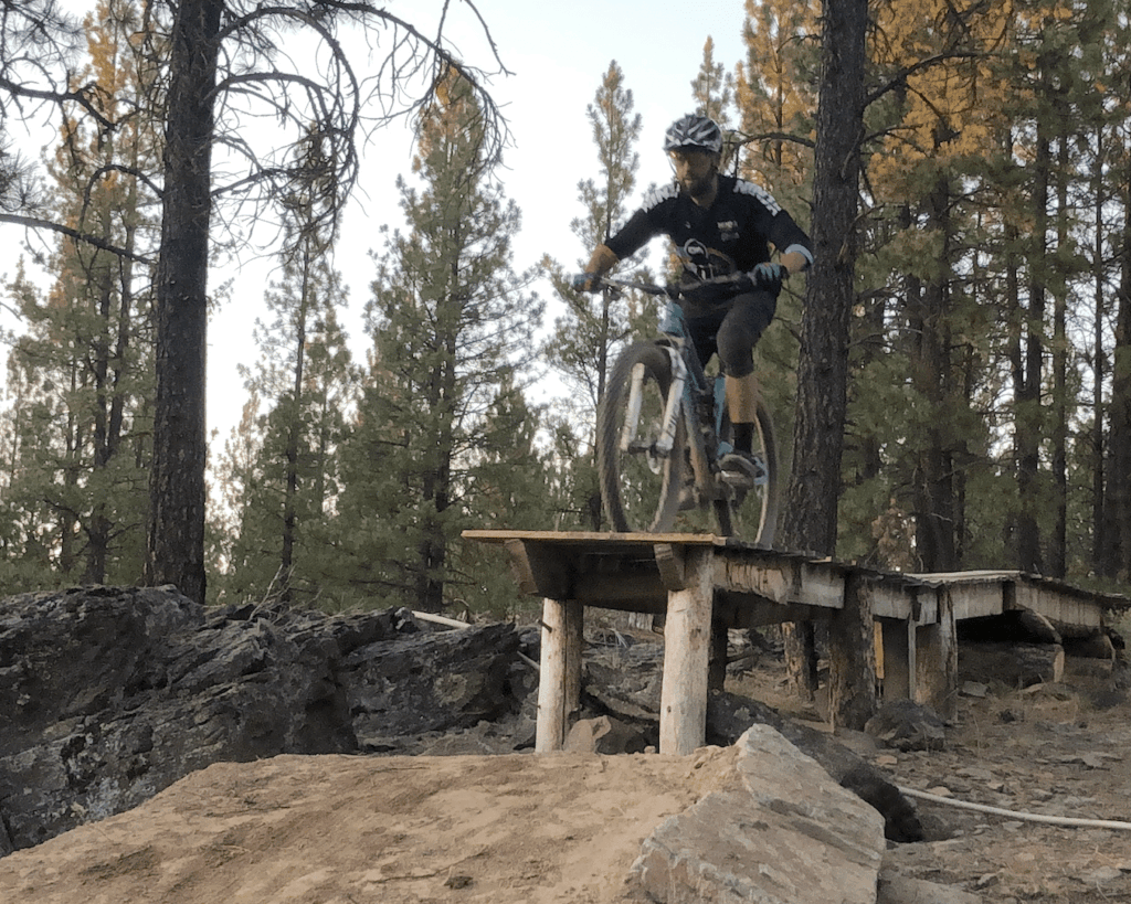 With no time to reset, I just made my “back” move as strong as I could and held on. It was a bit of a nose heavy landing, but I managed to ride away. I immediately adjusted the location of the dropper switch, though!