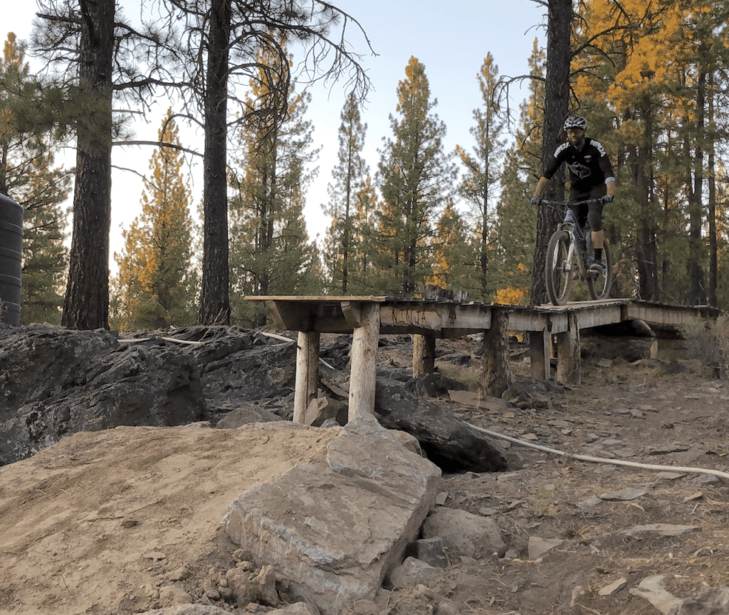 When you first start riding drops, you may want to get off your bike to investigate a drop before “sending it”. This will help you to gather important information about setting your speed, anything you need to prepare for in the landing area, etc. Start small, say 1-2 ft, and build up from there.