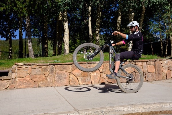To start learning how to do a wheelie, you need to lower your saddle and choose an easy gear that’s not too easy. You should begin your wheelie at around 5-10 mph. If your mountain bike has rear suspension, lock it out to prevent bouncing that could negatively affect your balance.