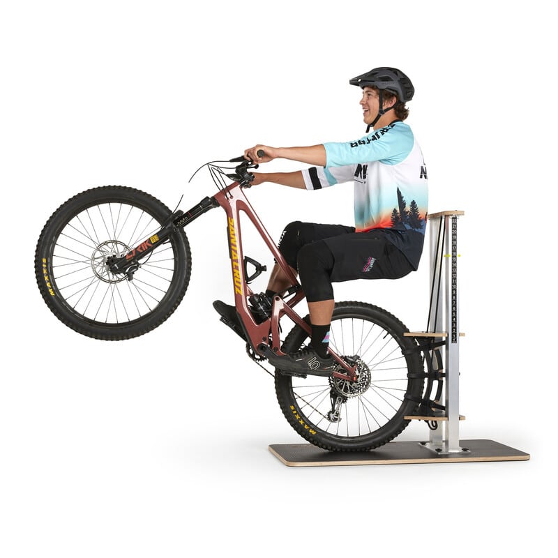 Love this! I’ve been biking for 8 months and want to get better on chunky terrain but I didn’t relish the idea of slamming my front wheel on rocks and logs practicing. Had this for 1 week just getting front wheel lifts down and my normal day to day rides have never felt more smooth. I use this every day for about 10 to 20 minutes (good workout despite the short time) I have no doubt that I’ll grow my skill in the comfort of my own home in no time! Shooting for a 12 inch vertical by Christmas, will update this review at the end of the year.