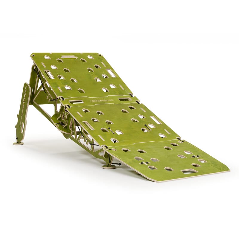 > Due to the revolutionary truss construction, the ramp is super stable, adaptive to any surface/terrain. Regulating the length of each leg makes the ramp adjustable to various angles and allows you to alter the radius of the surface.